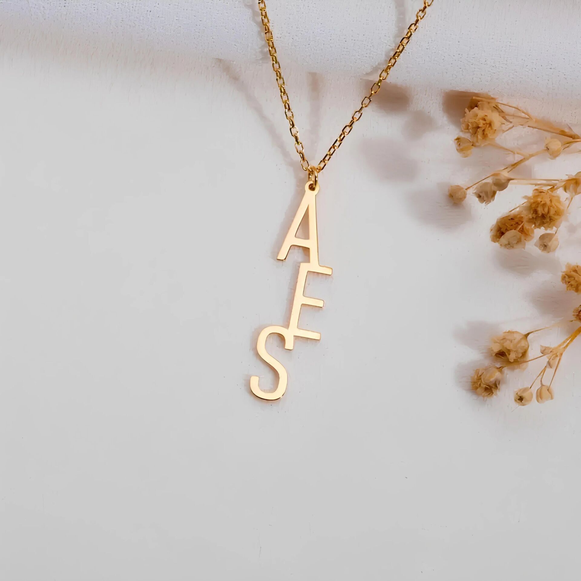 Üç Harfli Dikey Kolye - 925 Ayar Gümüş, 925 ayar gümüşün zarifliğini modern tasarımla buluşturuyor. El işçiliğiyle üretilen bu Üç Harfli Dikey Kolye, her kombine uyum sağlayan şık bir aksesuardır.