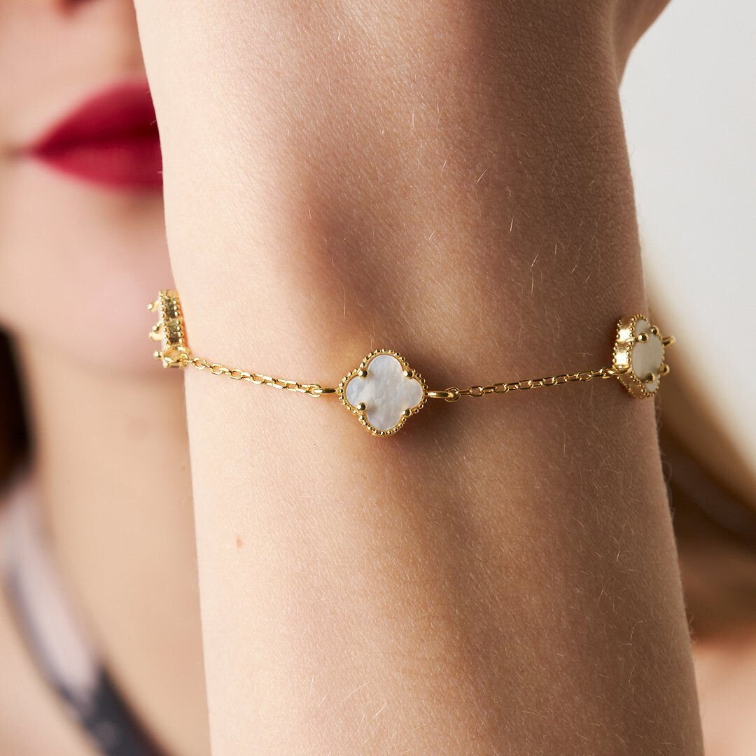 üçlü beyaz yonca bileziği