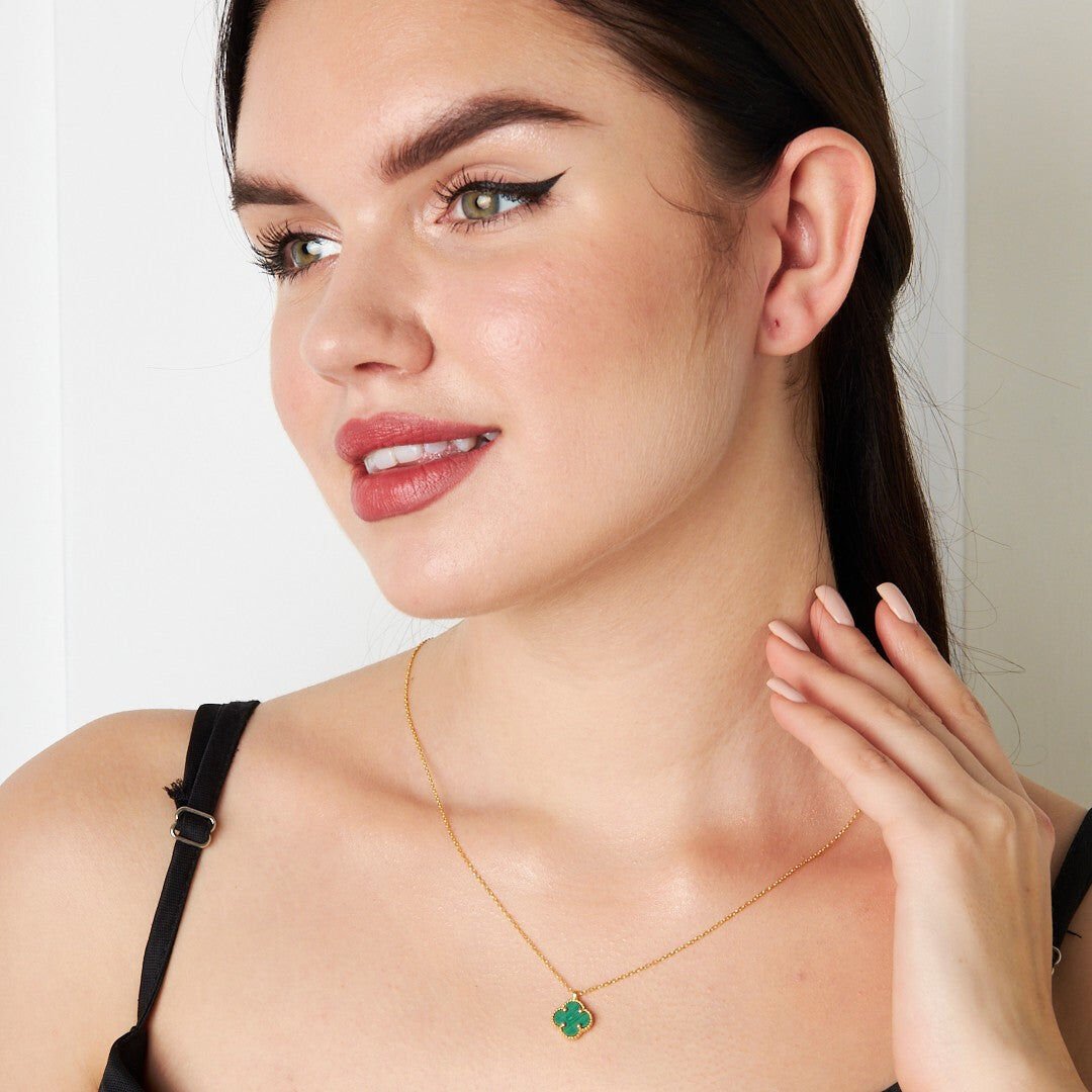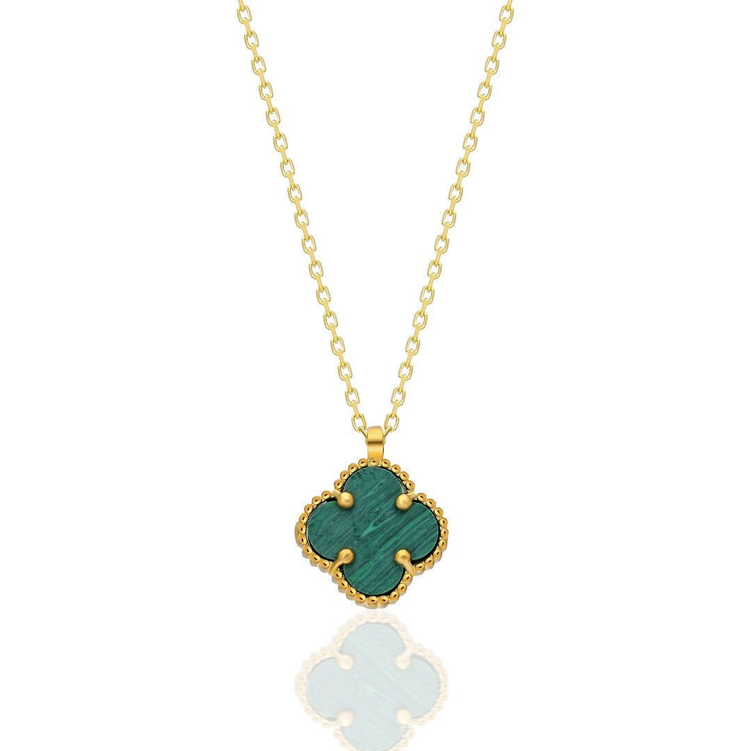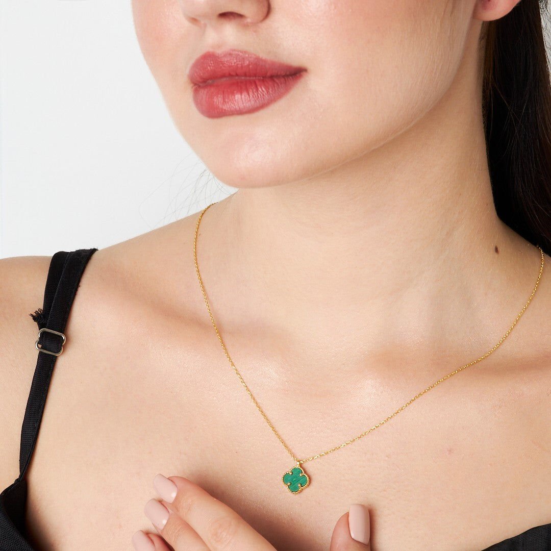 yeşil taşlı yonca kolyesi