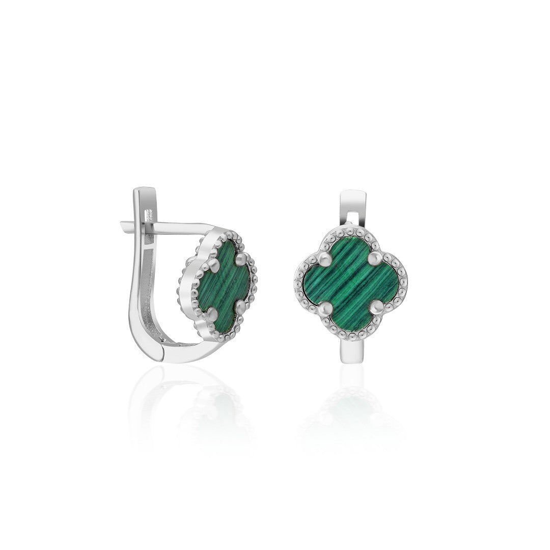 yeşil taşlı yonca küpeleri